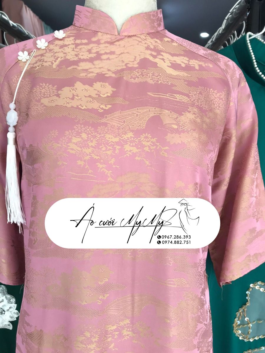- Chất liệu: Vải gấm cao cấp với hoa văn nổi tinh tế, mang đến sự sang trọng và đẳng cấp cho người mặc.