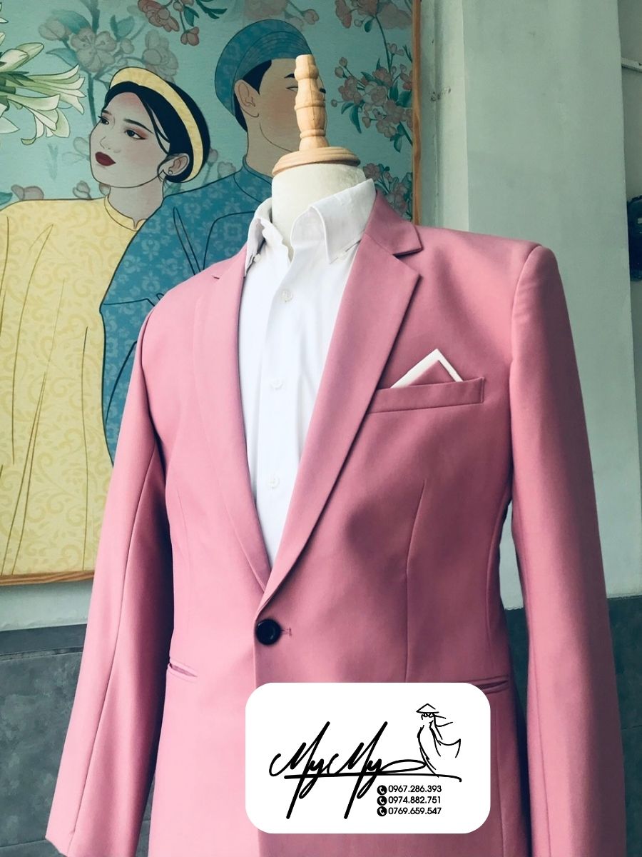 - Màu sắc: Hồng phấn ngọt ngào – gam màu xu hướng dành cho chú rể yêu thích phong cách lãng mạn, hiện đại.