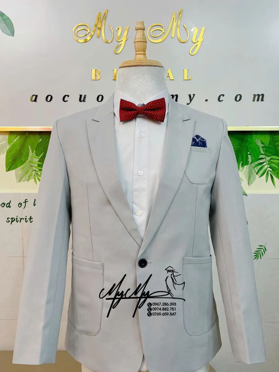 Bộ comple chú rể xám khói là lựa chọn hoàn hảo cho các chú rể yêu thích phong cách hiện đại, trẻ trung và lịch lãm. Gam màu xám khói nhạt mang nét nhẹ nhàng, tinh tế nhưng vẫn nổi bật trong mọi không gian tiệc cưới.