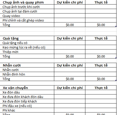 Cô dâu (CD), chú rể (CR) lên ngân sách chi phí cưới để có sự chuẩn bị về tài chính.