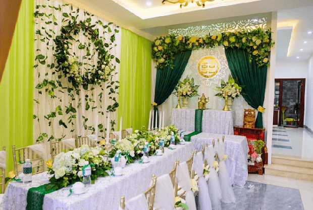 Tìm dịch vụ mâm quả, xe hoa và trang trí nhà cửa ngày rước dâu (cổng hoa, xe hoa, v.v), dịch vụ makeup chụp ảnh tiệc (tốt nhất 1 tháng trước ngày cưới).