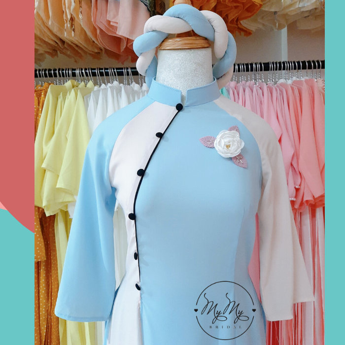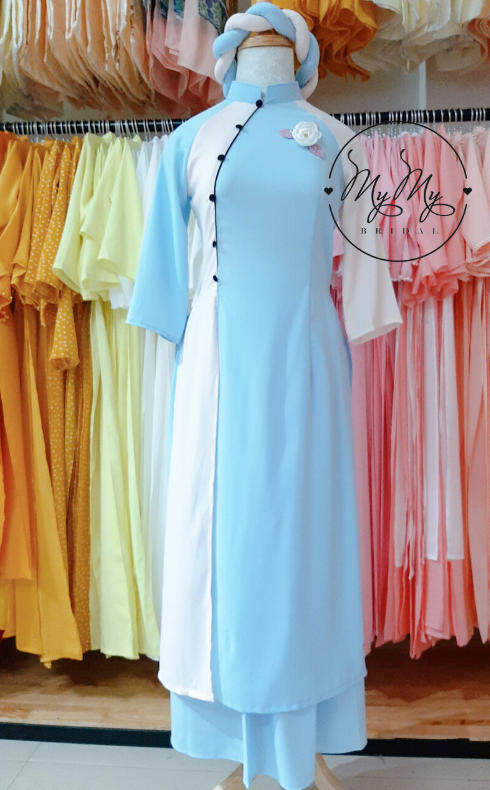 Áo dài ngày càng trở nên phá cách với những thiết kế ấn tượng và độc đáo để phù hợp với xu hướng năng động của giới trẻ. Để đắp ứng được điều đó, MyMyBridal đã cho ra mắt mẫu áo dài bưng quả mới nhất với với màu xanh phối hợp với trắng nhẹ nhàng, mang lại sự hài hòa,tươi sáng không bao giờ lỗi mốt. Không những thế, với thiết kế xẻ tà đặc biệt kết hợp với hoa đính kết tinh tế sẽ khiến cho dàn bưng quả của bạn trở nên nổi bật hơn bao giờ hết.