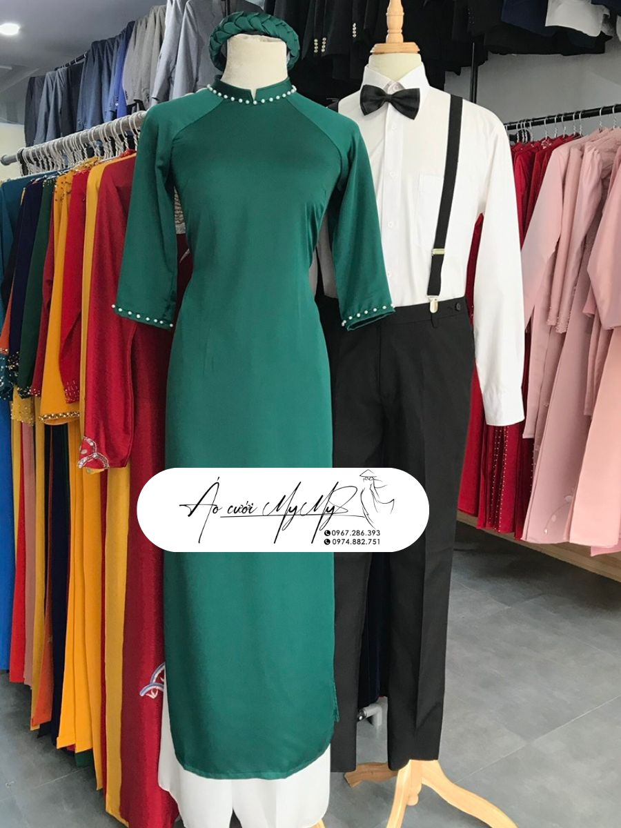 ✔ Áo dài nữ màu xanh rêu trầm sang trọng, tôn da và tạo cảm giác quý phái.