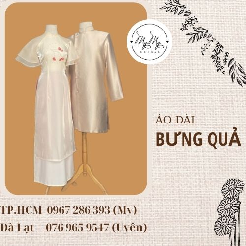 Để chuẩn bị cho hôn lễ, cô dâu và chú rể luôn chăm chút đến trang phục cưới với mong muốn luôn xinh đẹp trong ngày trọng đại của mình. Áo dài bưng quả cũng là điều mà dâu rể quan tâm để thêm phần lung linh cho ngày cưới.