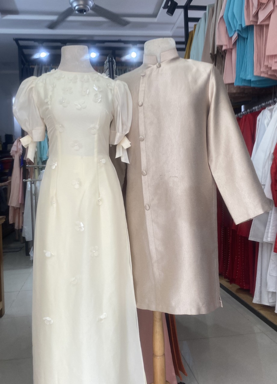 Áo dài bưng quả cho các bạn nam cũng rất được quan tâm nếu cô dâu - chú rể chọn trang phục là cặp áo dài.