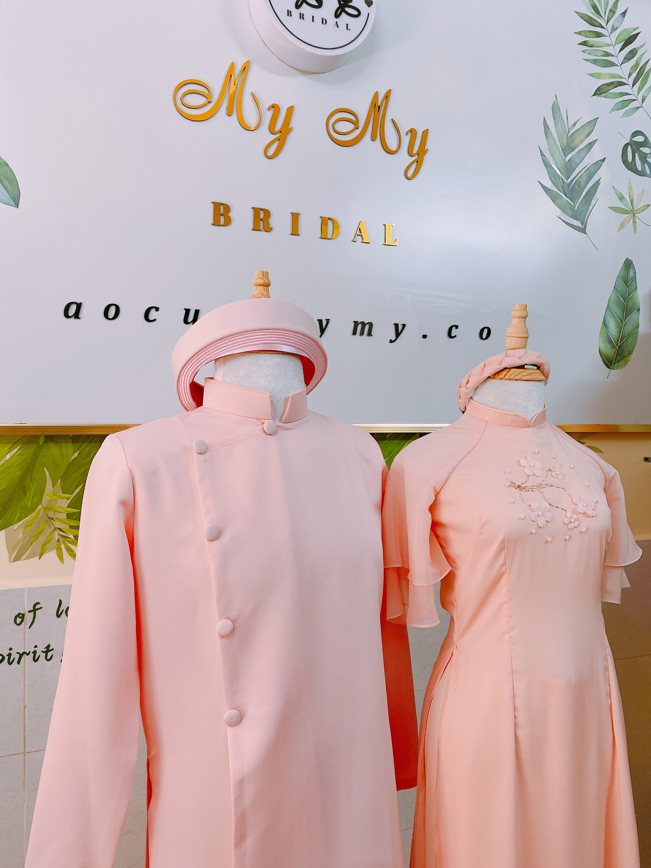 Áo dài bưng quả nam nữ Tone Hồng (Mẫu I)