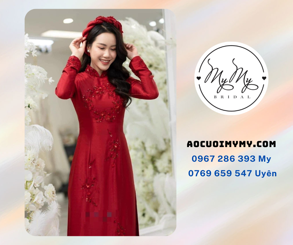 ÁO DÀI CÔ DÂU ĐỎ HOA XOAN