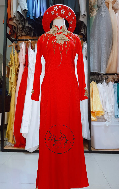 ÁO DÀI CÔ DÂU ĐỎ NGUYỆT QUẾ