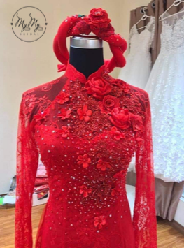 ÁO DÀI CÔ DÂU ĐỎ HOA XOAN