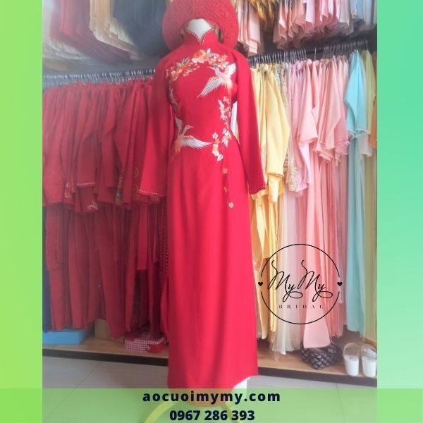 ÁO DÀI CÔ DÂU ĐỎ NGUYỆT QUẾ