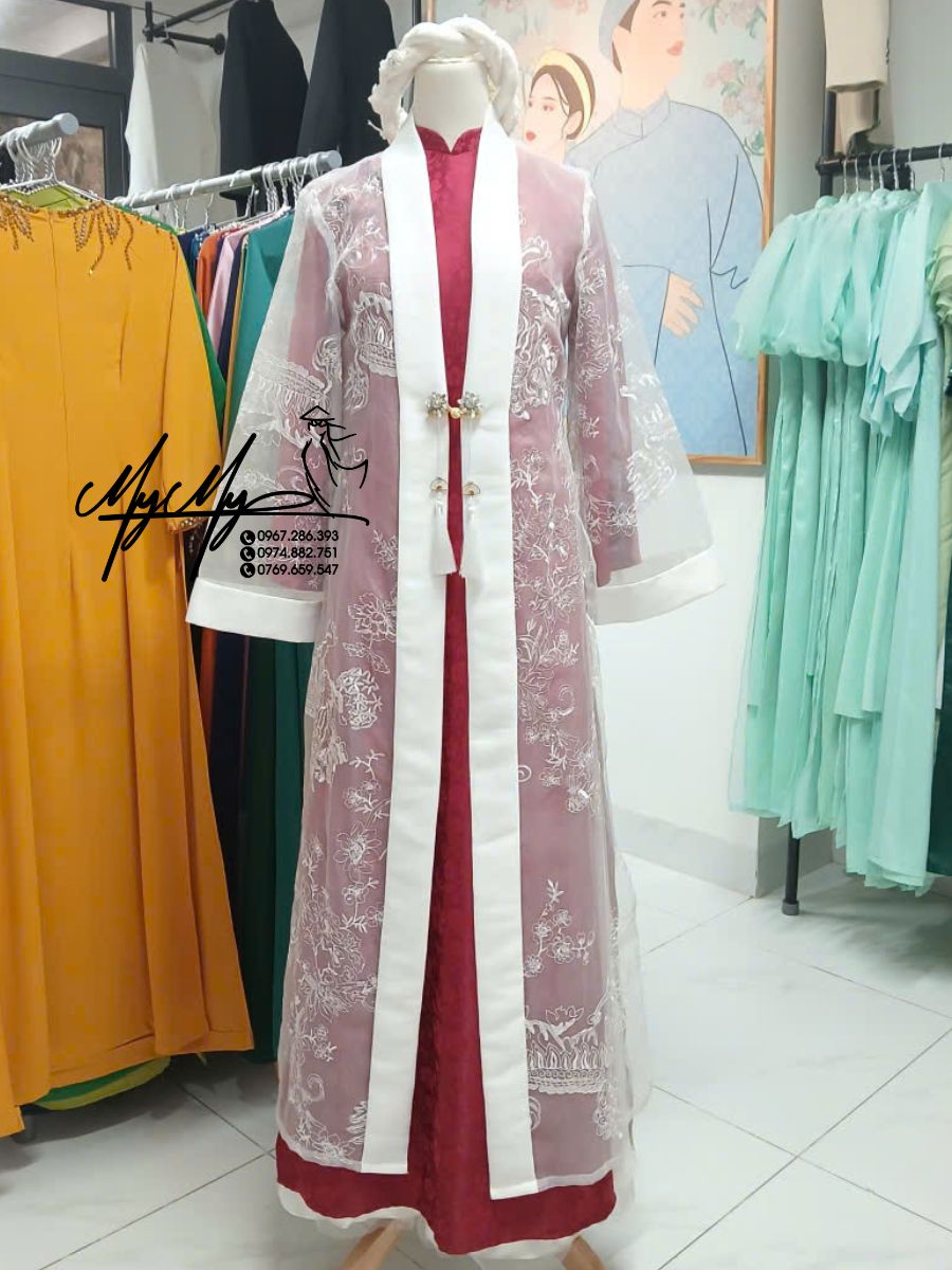 ÁO CHOÀNG ĐỎ REN HOA VĂN